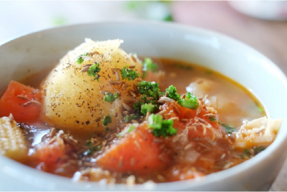 みそ汁や野菜スープなどの温かい汁物は食事の満足度を上げ、食べ過ぎ防止にもなります。内臓を温めるので代謝アップにもつながります。温かい飲み物を飲むだけでも違いますね。
